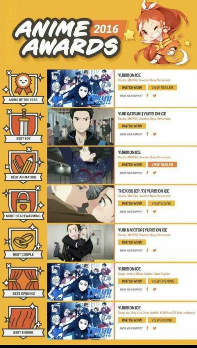 "yur on ice is winning for best animation"
